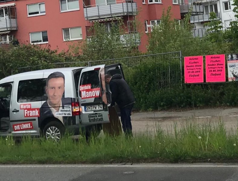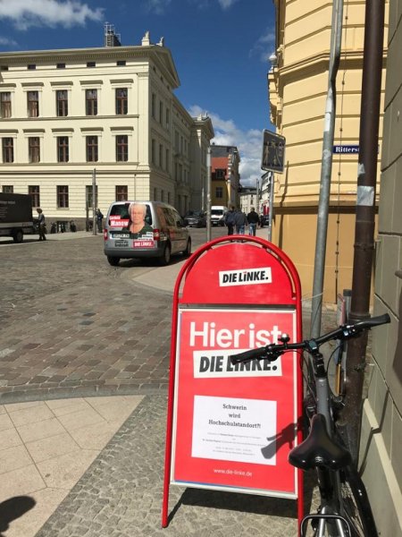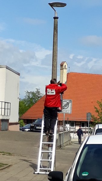 Der Nachmittag gehört noch einmal dem Plakatieren. Heute hängen Viktor Micheilis und ich die Themenplakate und die unserer Kollegin Cordula Manow auf.