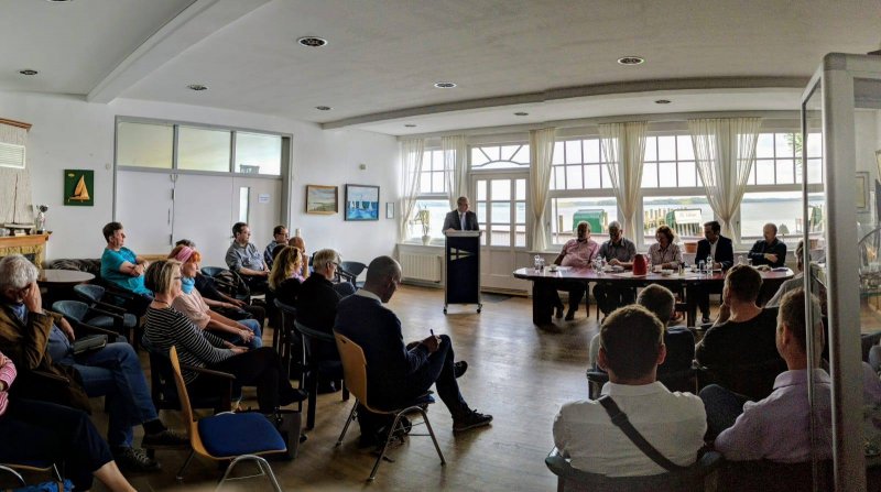 Sport trifft Politik hieß es am heutigen Abend beim Schweriner Seglerverein. Der Stadtsportbund hatte eingeladen. Neben Lob für das, was die Stadtpolitik in den letzten Jahren unter teilweise sehr schwierigen Bedingungen auf den Weg gebracht hat, wurden auch Probleme benannt. Eine Trainingsfläche für den Motorsport, hohe Pachten beim Tennisverein oder das Gebaren des BBL bei der Nutzung von Landesflächen gehörten dazu.
