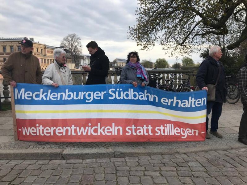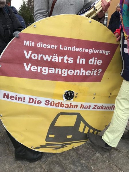 Heute morgen hat die Bürgerinitiative Pro Südbahn vor dem Schloss demonstriert. Als Eisenbahner habe ich das Ansinnen gern unterstützt. Man kann nicht über die fehlende Infrastruktur im ländlichen Raum und die Folgen des Klimawandels jammern und dann solche Entscheidungen treffen.