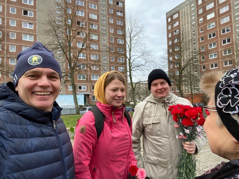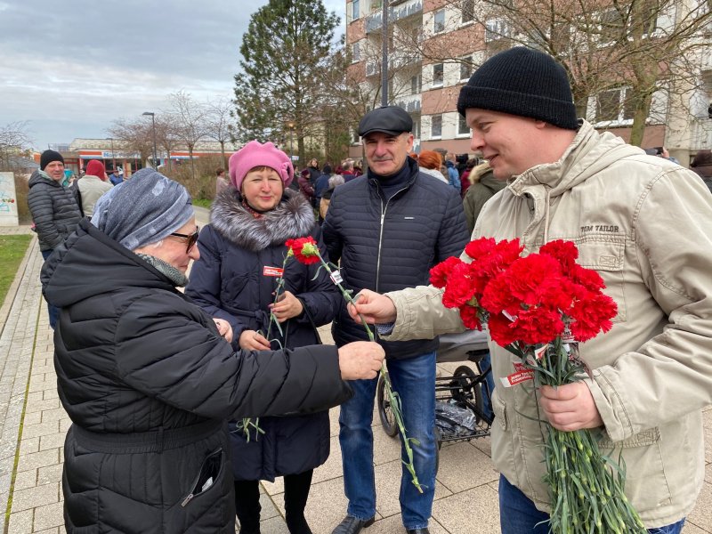 Zum letzten Mal fand heute die traditionelle Feier statt. Ich habe den Brunch diesmal für einen Rückblick auf die Geschichte genutzt und dabei u.a. das Gedicht Brot und Rosen vorgetragen. Anschließend habe ich an die Zuhörerinnen der singenden Balkone Blumen verteilt.