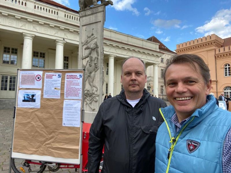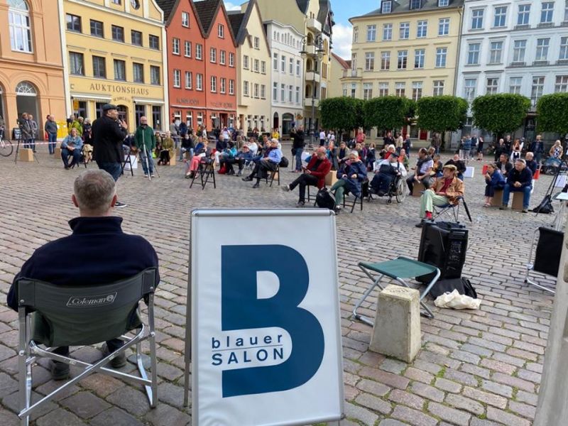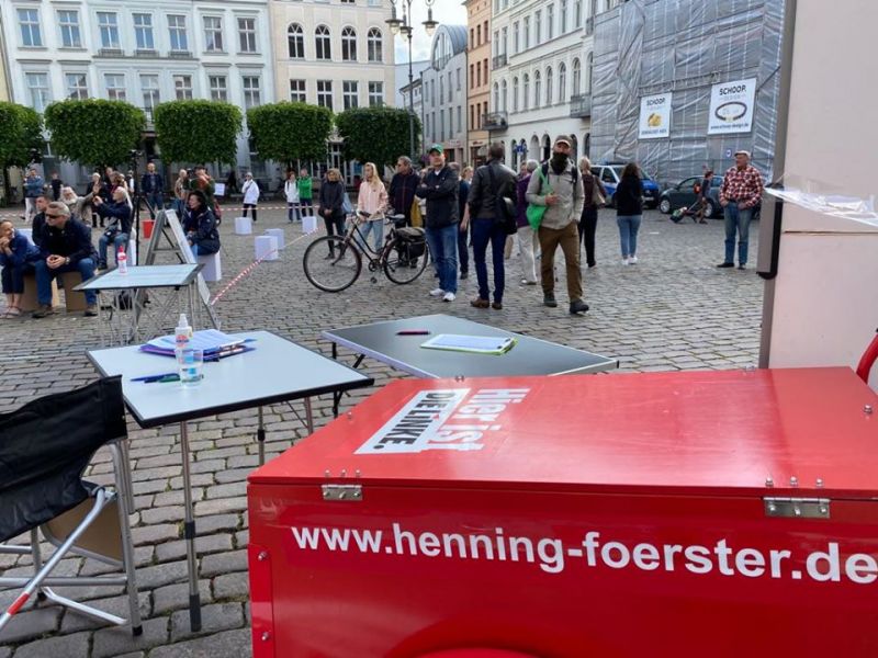 Das Wetter hat gehalten. Die von Dr. Daniel Trepsdorf initiierte, offene Diskussion am Markt unter freiem Himmel ist gut besucht. Abstandsgebote und andere Auflagen werden natürlich eingehalten.