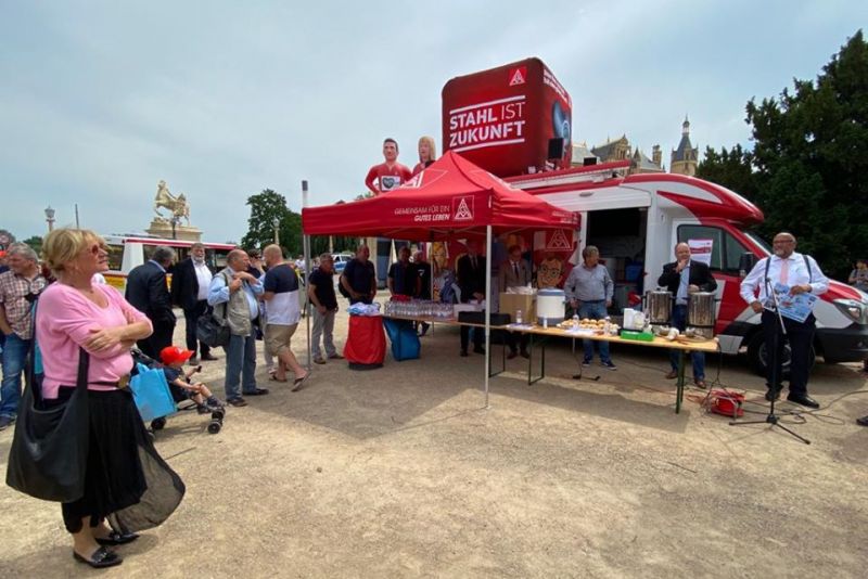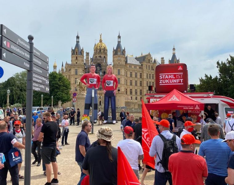 Heute habe ich vor 250 Kolleg*innen gesprochen, die für den Erhalt ihrer Arbeitsplätze auf den M-V Werften am Schloss demonstriert haben. #IGMetallKüste