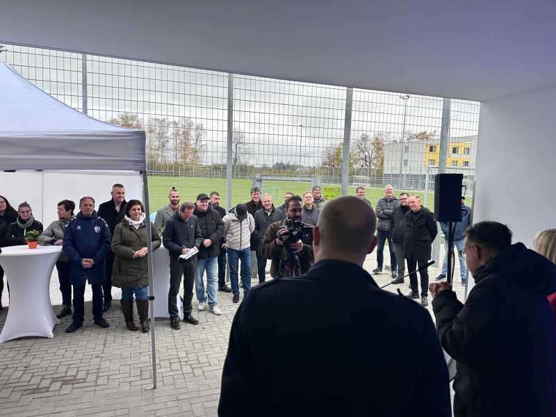 Heute Mittag besuche ich die Eröffnung des neuen Funktionsgebäudes für die American Football Spieler von den Mecklenburg Bulls und die Fussballfrauen vom FSV Schwerin. Damit ist das Areal, auf dem bereits ein Kunstrasenplatz mit Flutlicht gebaut wurde jetzt voll funktionsfähig.